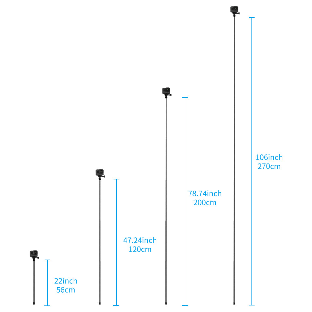 Bastón Selfie 2,7 m de fibra de carbono para cámaras de acción – TELESIN